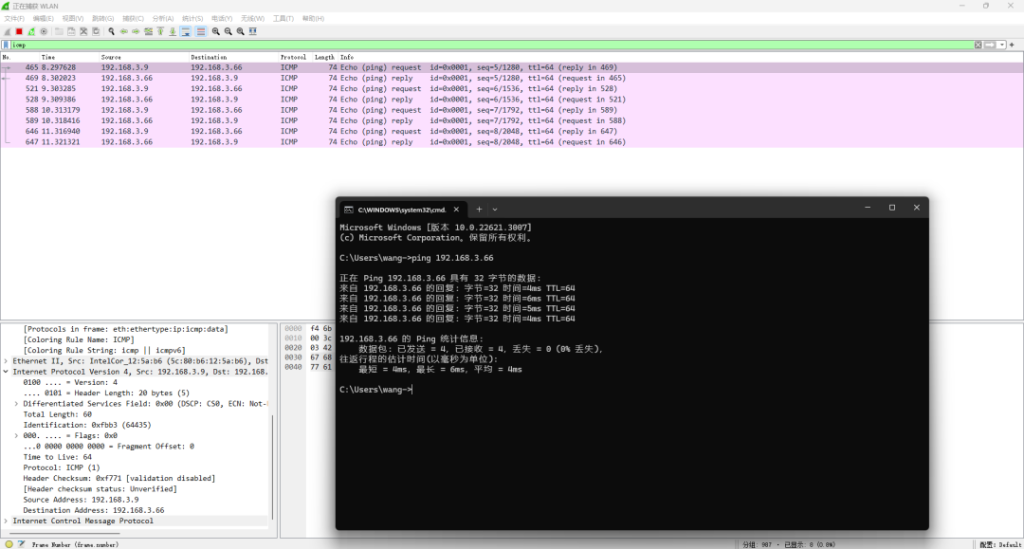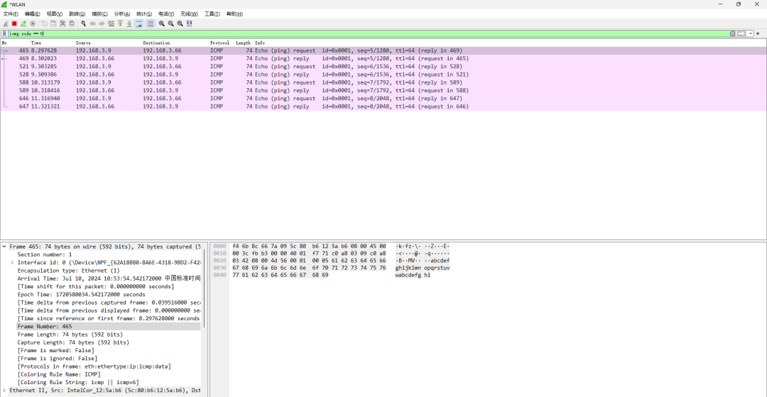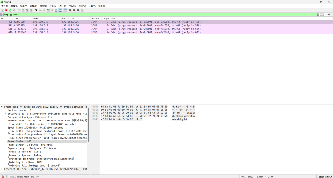通过捕获过滤器筛选 ICMP 流量,可以捕获特定类型和特定条件下的 ICMP 报文。