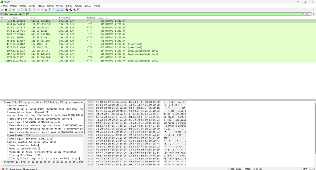 HTTP 流量是网络分析中常见的一部分,通过显示过滤器可以筛选和分析特定的 HTTP 请求和响应。