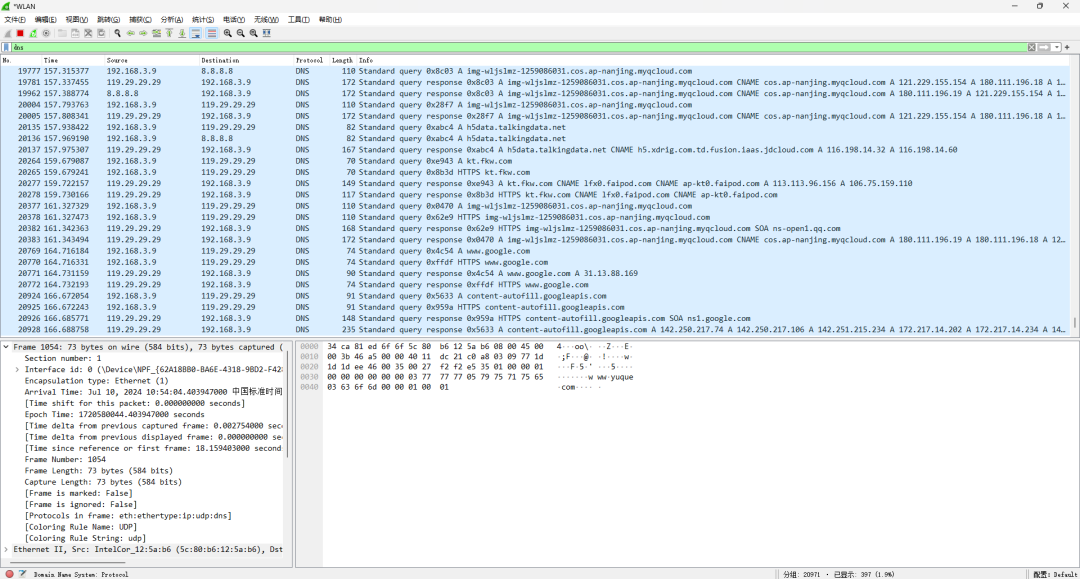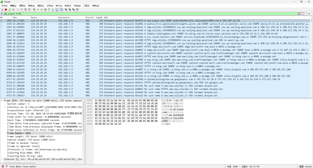 通过捕获过滤器筛选 DNS 流量,可以有效地捕获特定的 DNS 查询和响应。