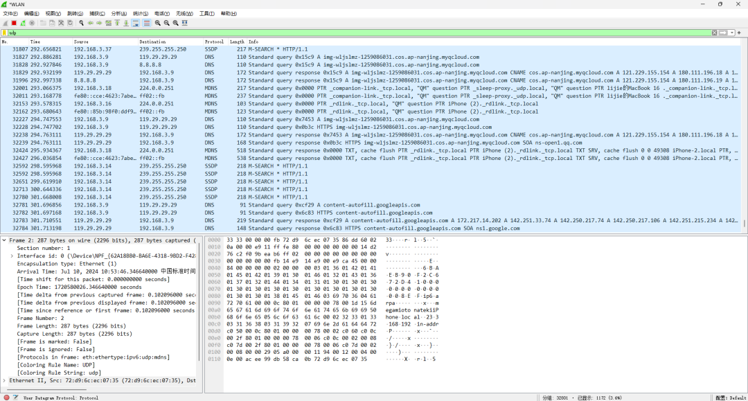 通过捕获过滤器筛选 UDP 流量,可以捕获特定会话和特定条件下的 UDP 报文。