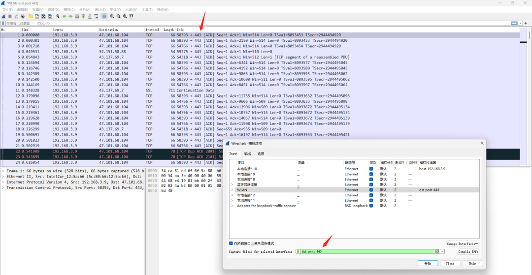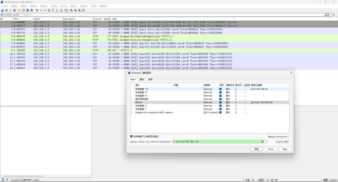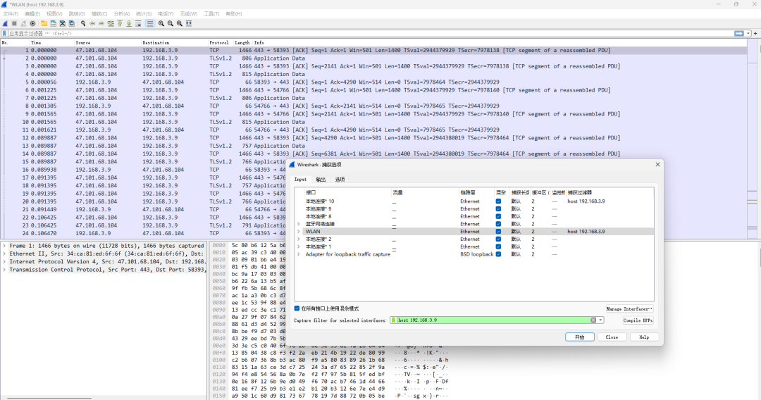 • 捕获接口选择:选择要捕获数据包的网络接口,可以是以太网、Wi-Fi等。